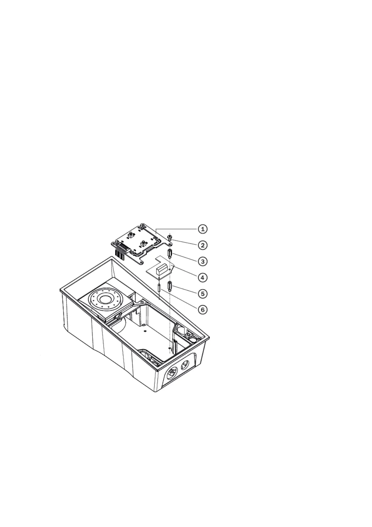 Put the reader board (4) in the main board connector making sure that the mounting hole is directlyabove