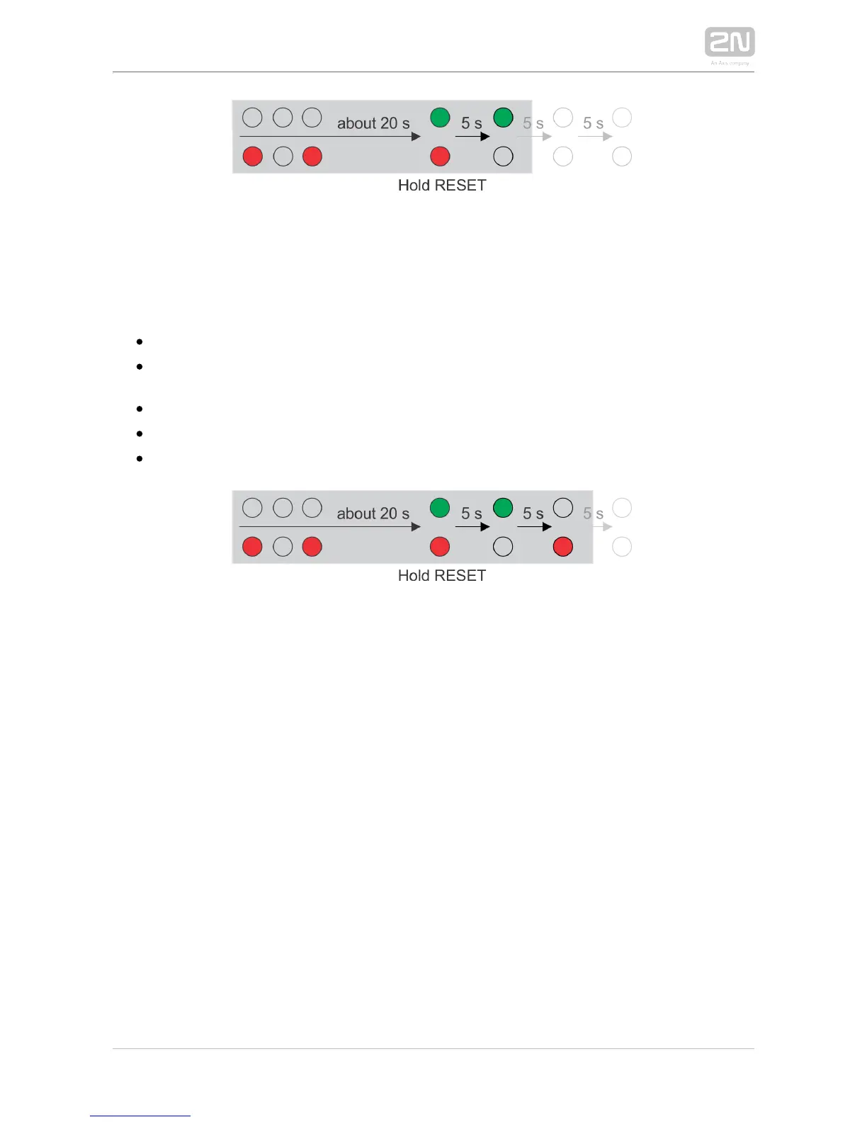 Press the RESET button shortly (< 1 s) to restart the system without changing