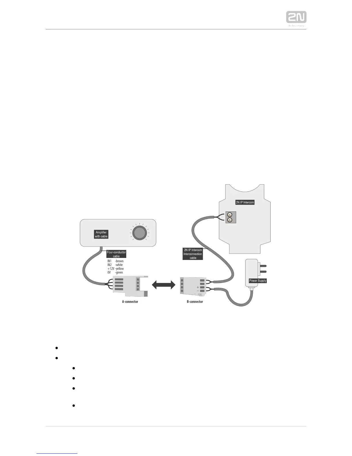 Use the supplied connectors to connect the amplifier to the intercom and power