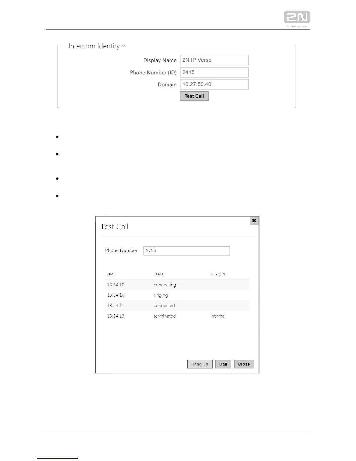 Phone number (ID) – set the intercom phone number (or another unique ID