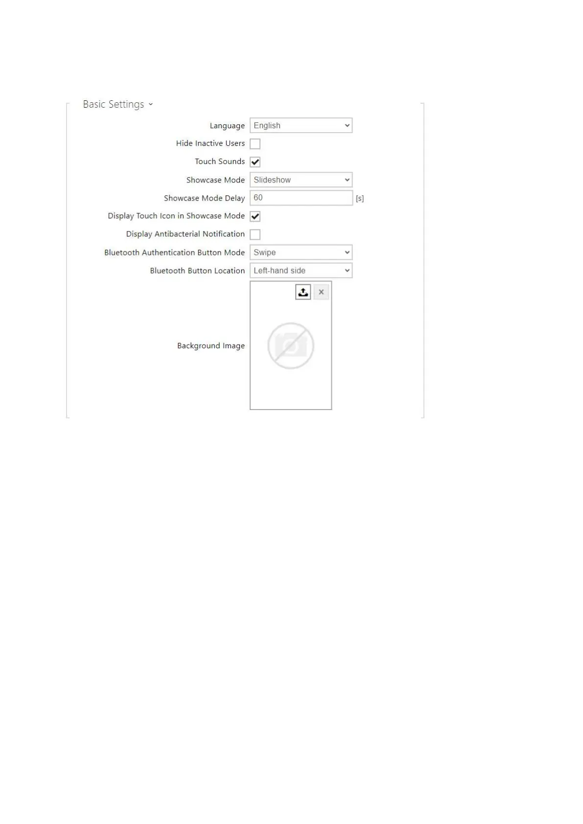 Showcase Mode – set whether the device shall go into the Showcase mode when idle.