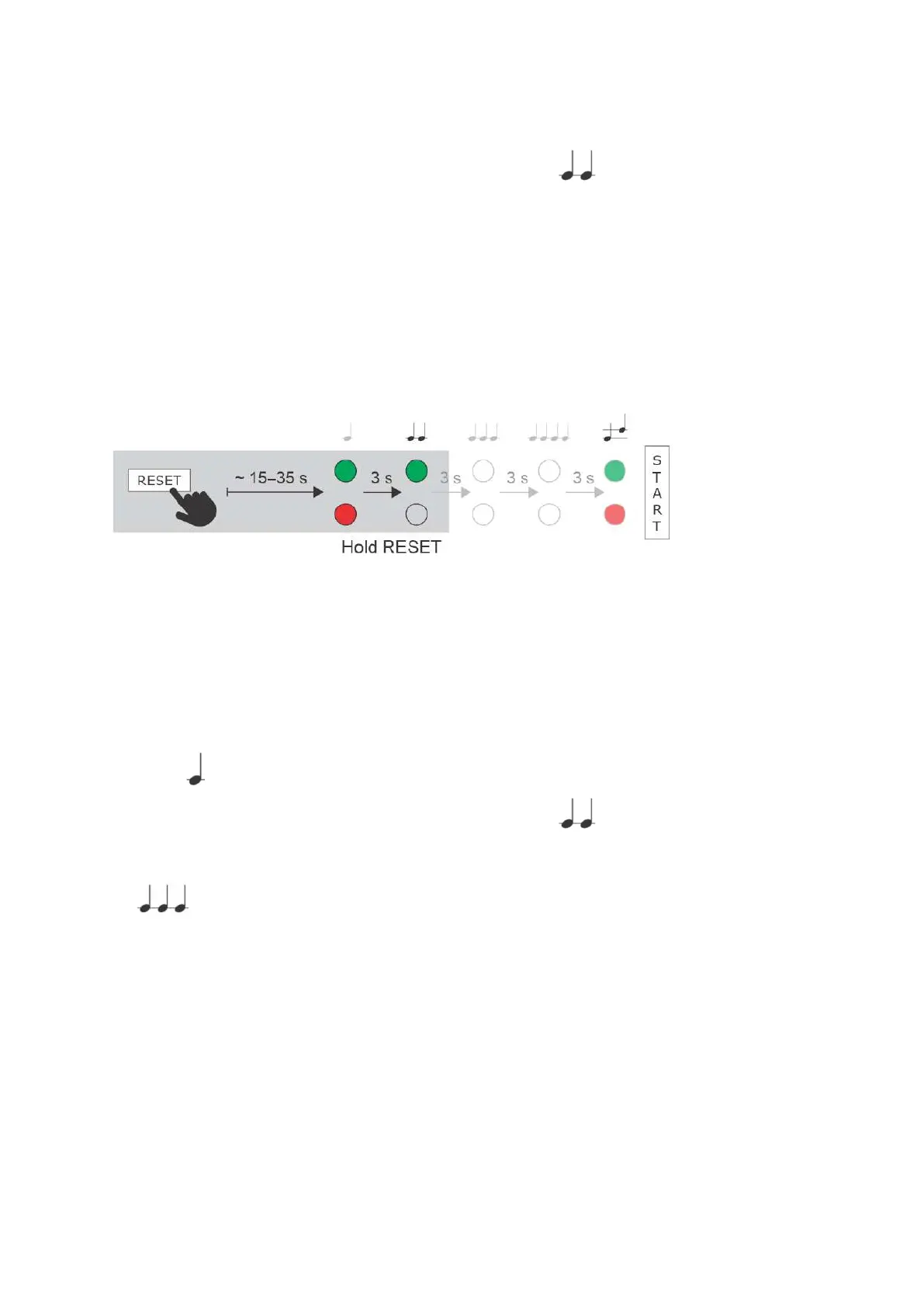 Wait until the green LED goes off and the red LED goes on again andthe acoustic signal