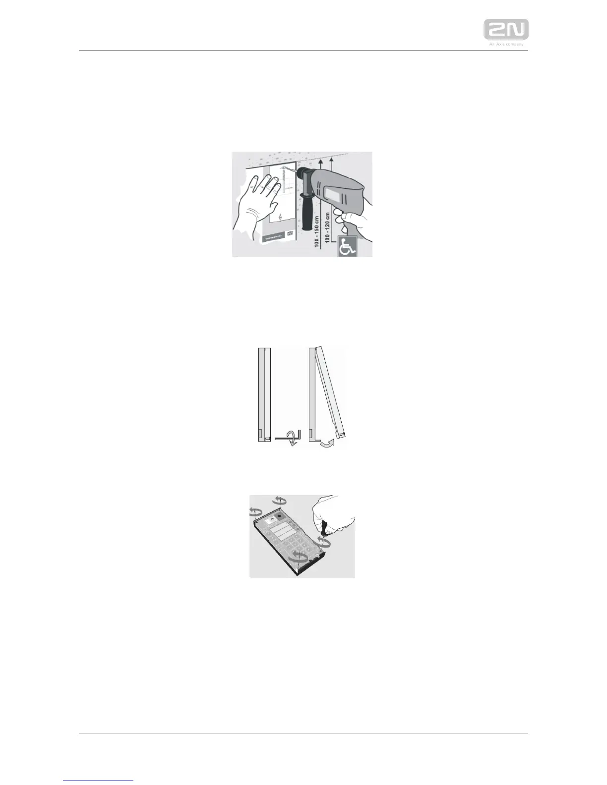 1. Drill holes according to the template included in the supply. Insert the 2N IP Vario