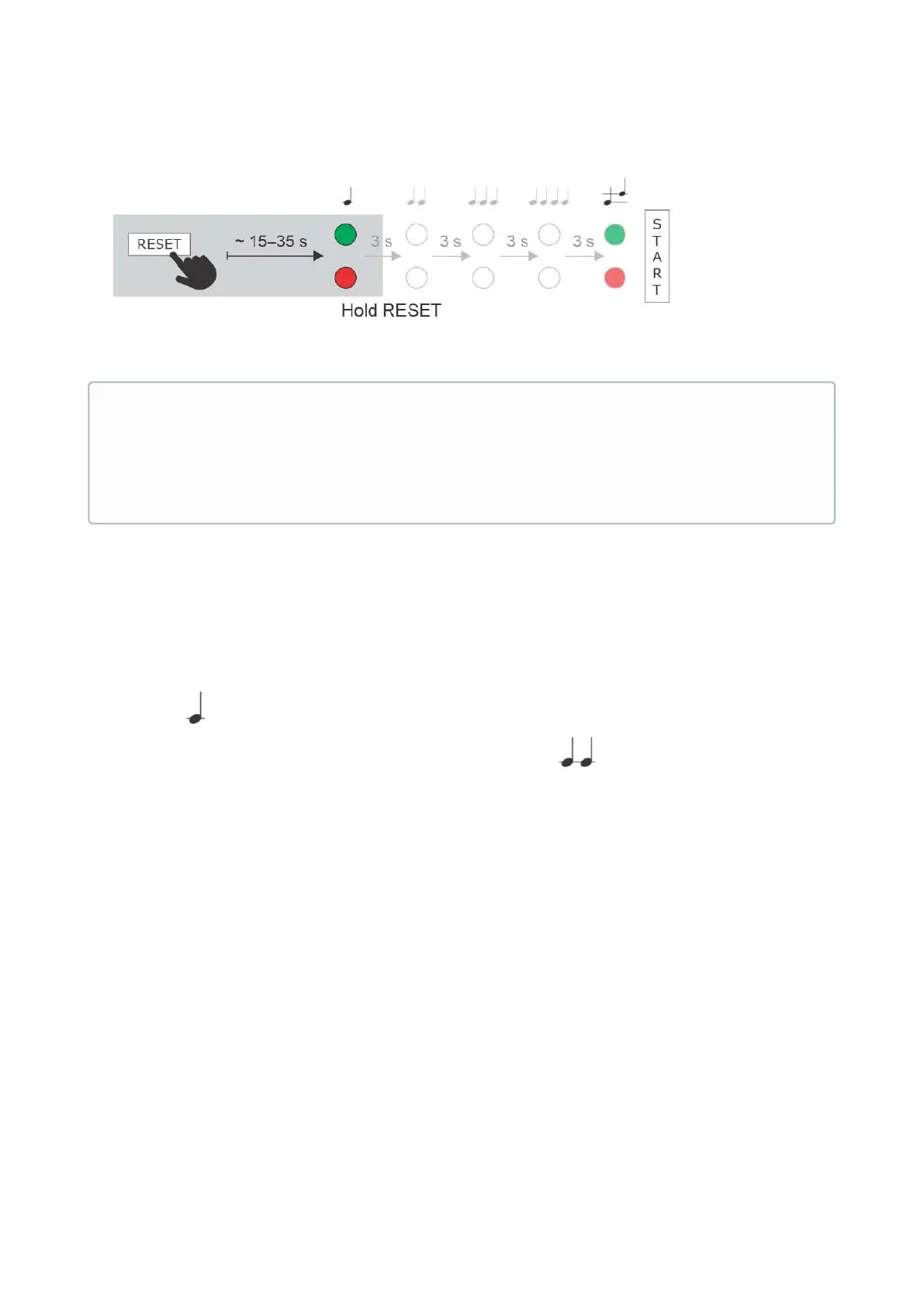 The delay after pressing RESET till the first light and sound signalling is set to 15–
