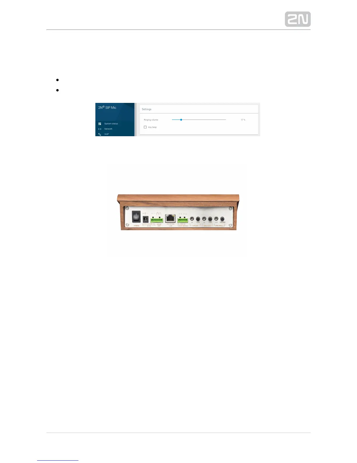 Ringing volume – set the device ringing volume (incoming call tone).