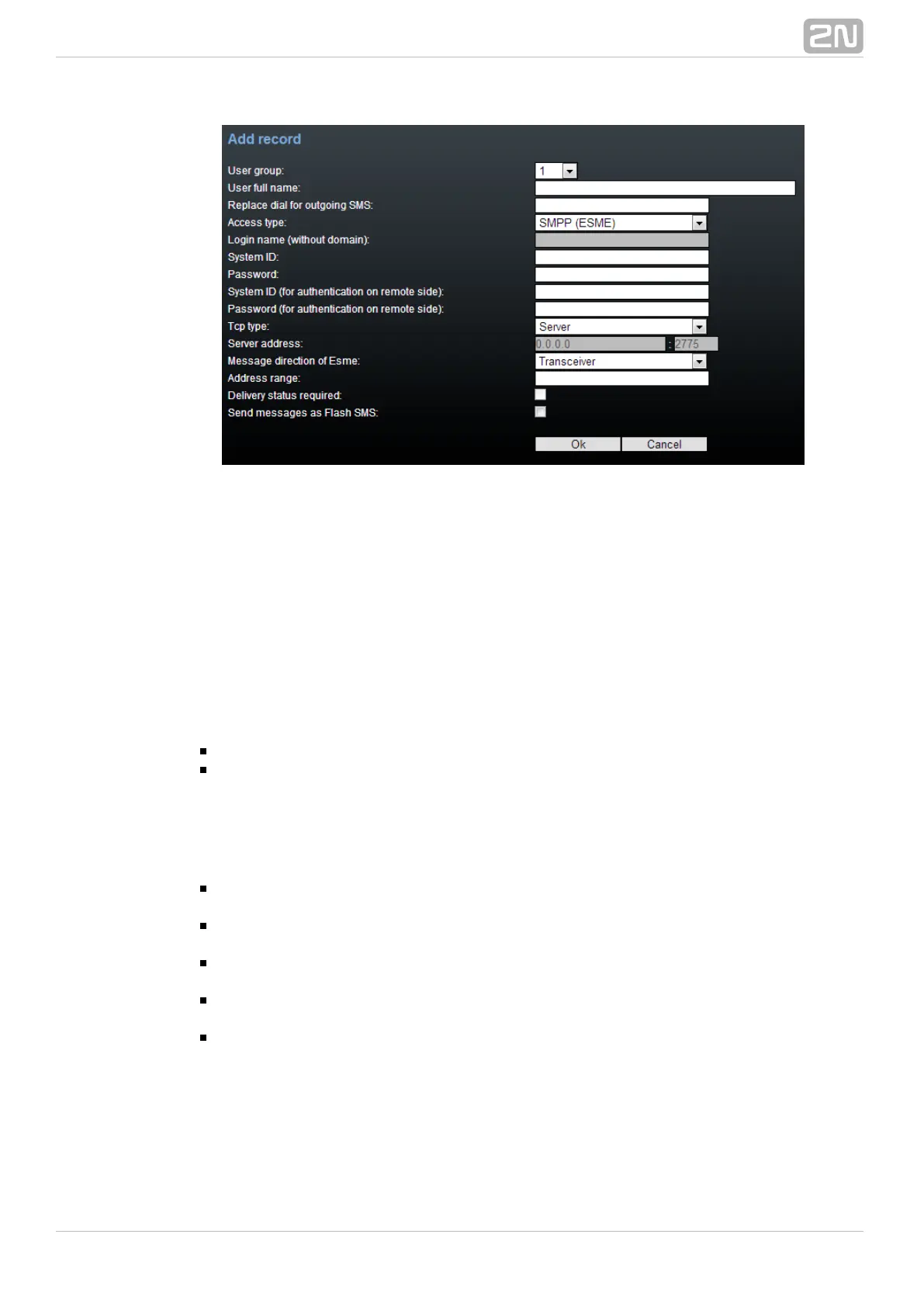 Set the basic parameters for SMS sending via SMTP/POP3 or SMPP.
