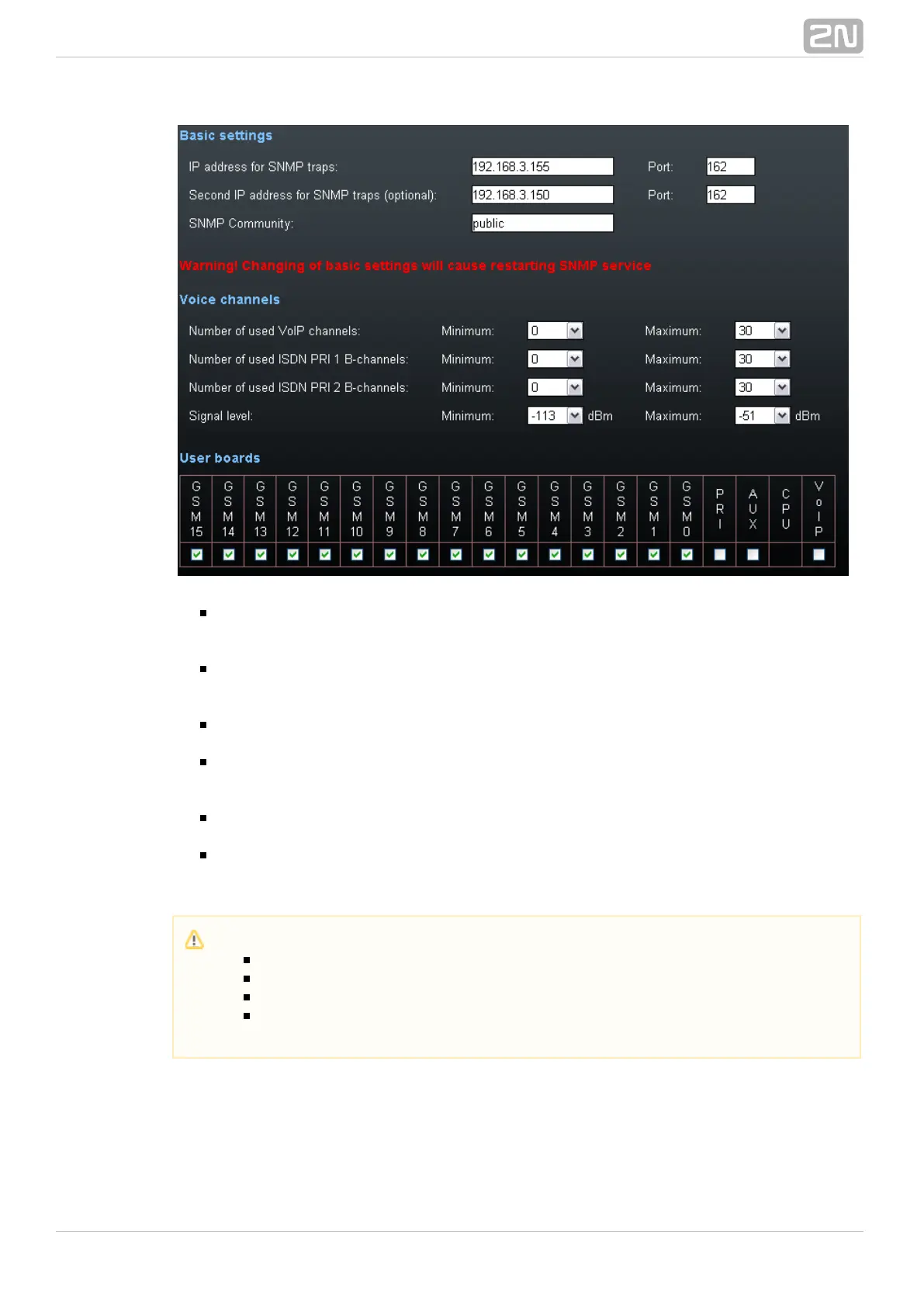 signal. An SNMP trap will be sent whenever the defined values are exceeded.