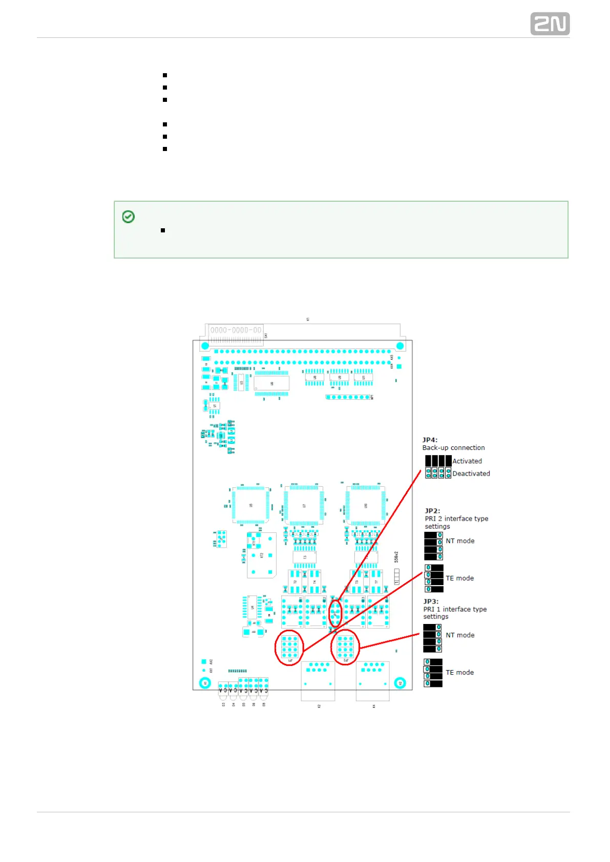 There are three configuration jumper blocks on the PRI board. JP2 and JP3 are used for