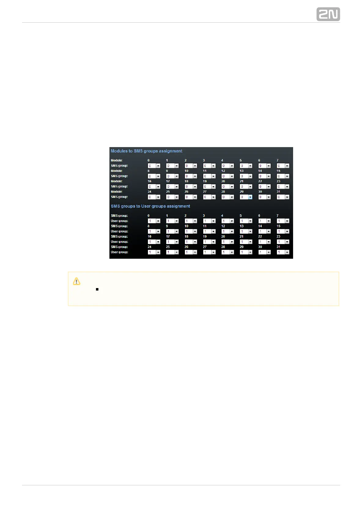 This section helps you assign GSM modules to SMS groups (according to the GSM