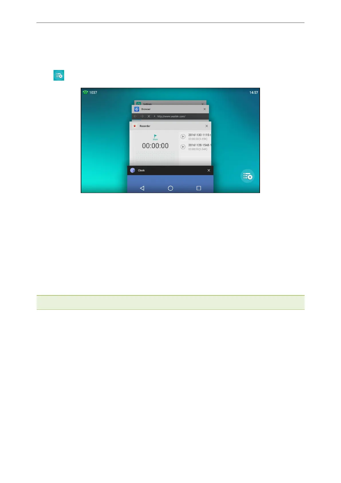 If there are no running applications, the phone screen will prompt “Your recent screens appear here”.