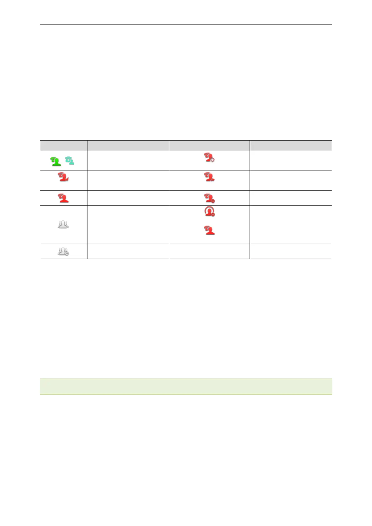 The following table shows all kinds of icon indicator associated with the shared line and the corresponding descrip-