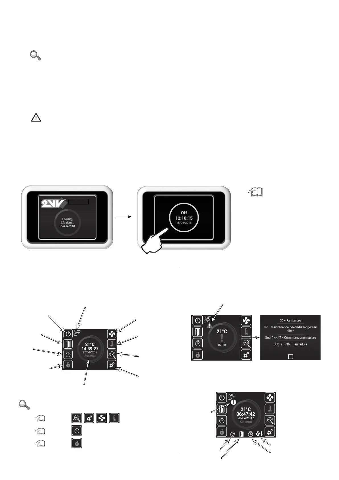 Shows current temperature, air ow, heating