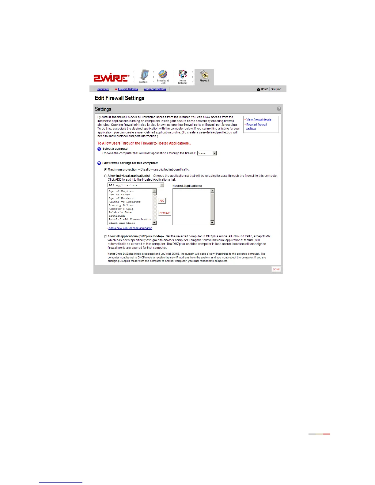 You can allow individual applications, or use DMZplus mode. When in DMZplus mode, the designated