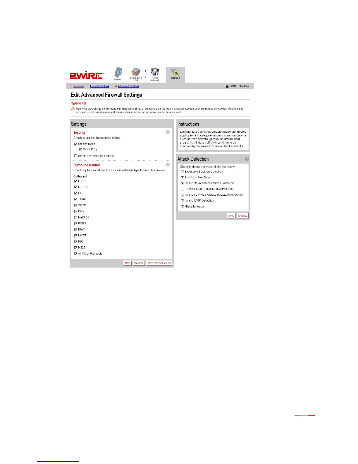 The 2Wire gateway firewall already provides a high level of security. You can configure the firewall to provide