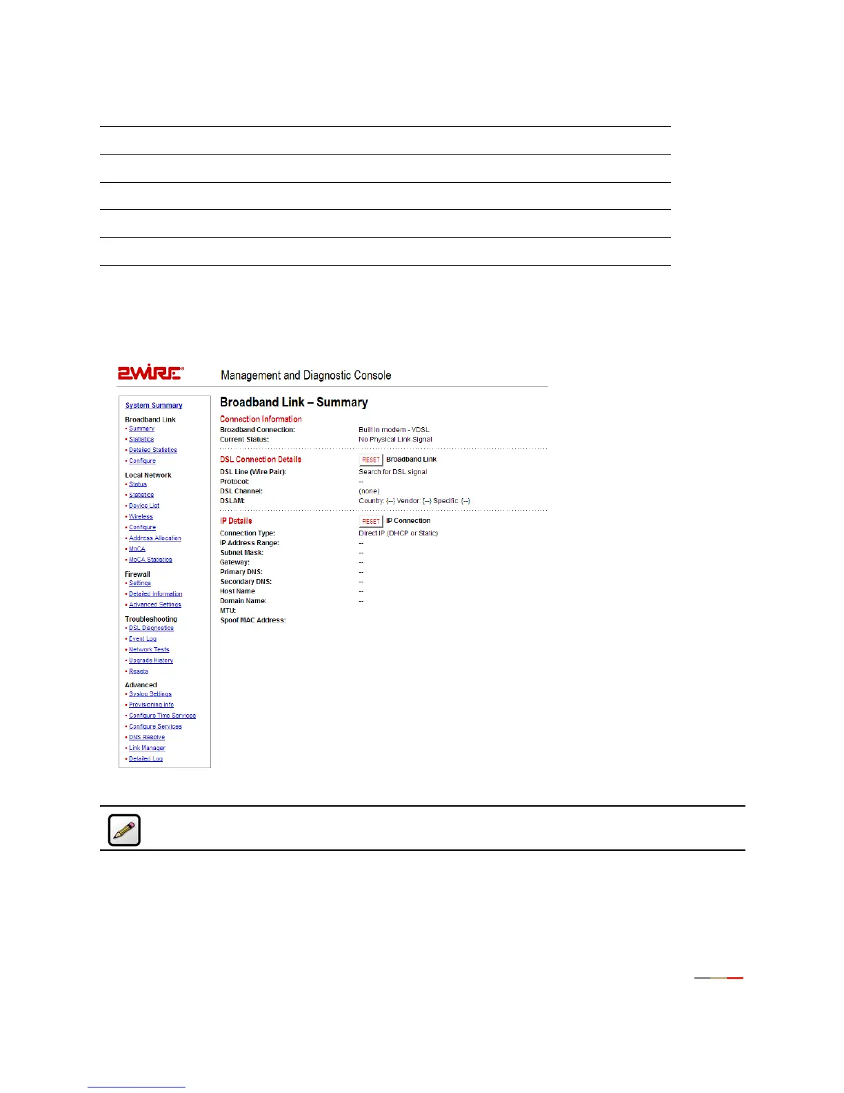 The Broadband Link - Summary page allows you to view 2Wire gateway broadband connectivity-related