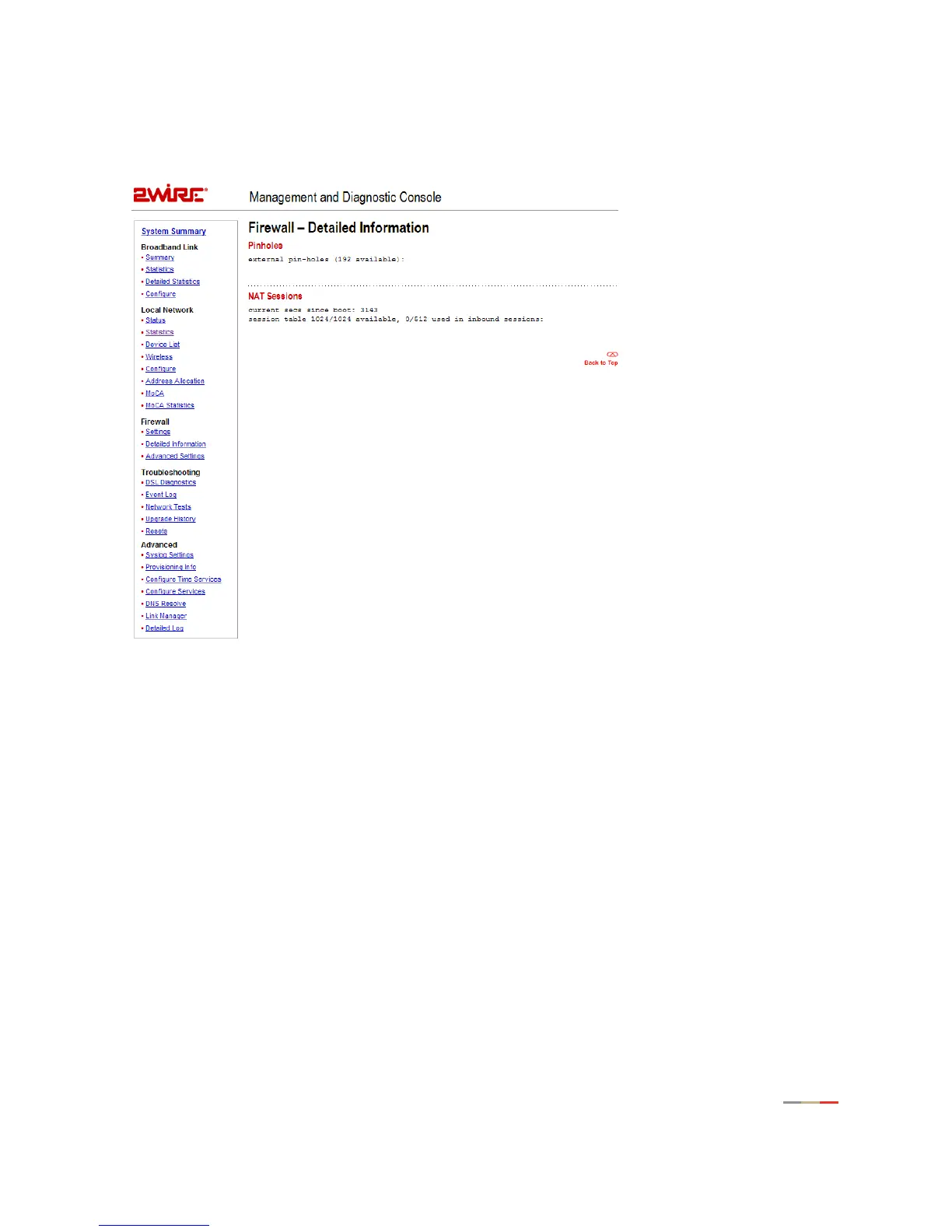 2Wire 3800HGV-B - Troubleshooting - DSL Diagnostics Page
