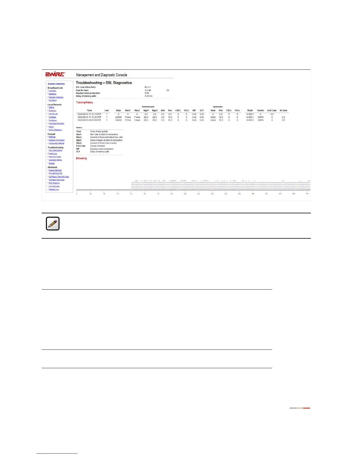 Troubleshooting - DSL Diagnostics Page