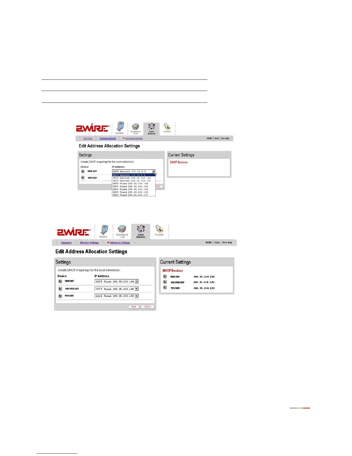 Edit the addresses assigned to each device as shown below. Assign an available static IP address to each