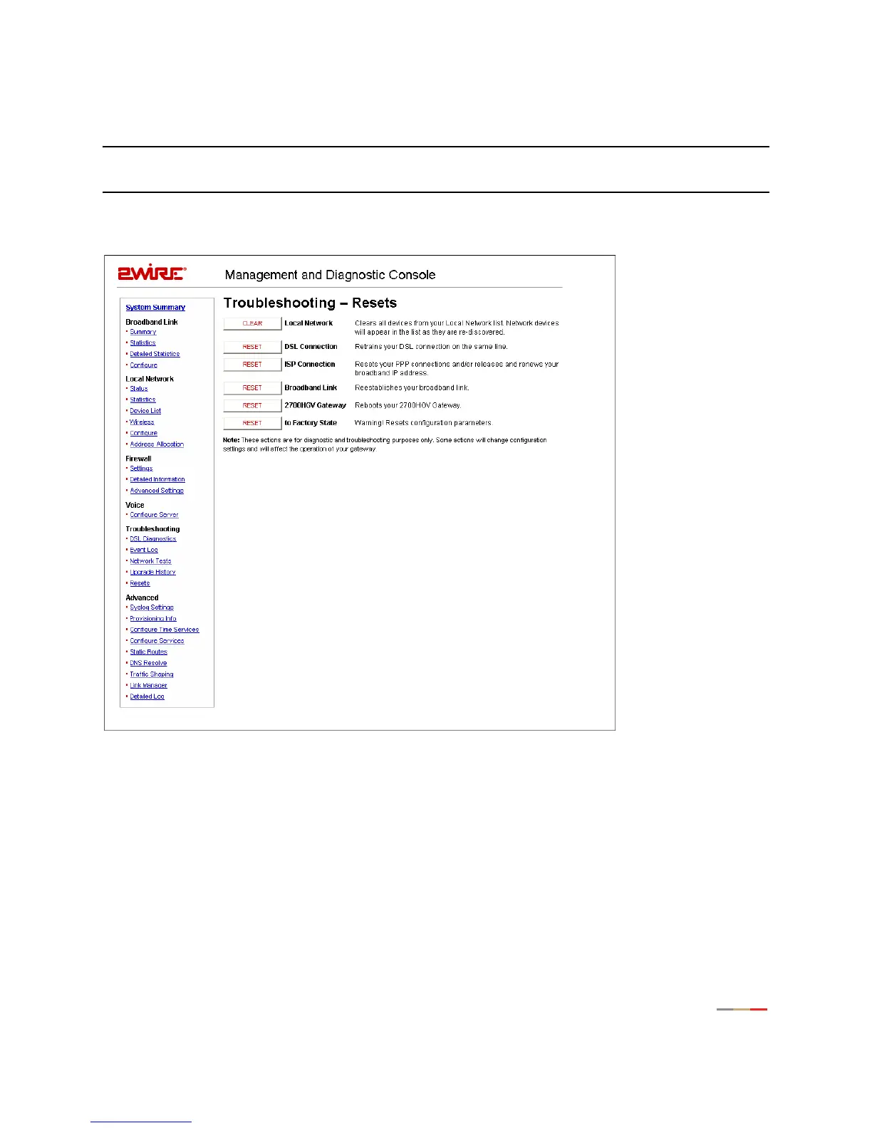The Troubleshooting – Resets page allows you to reset various components associated with the 2Wire