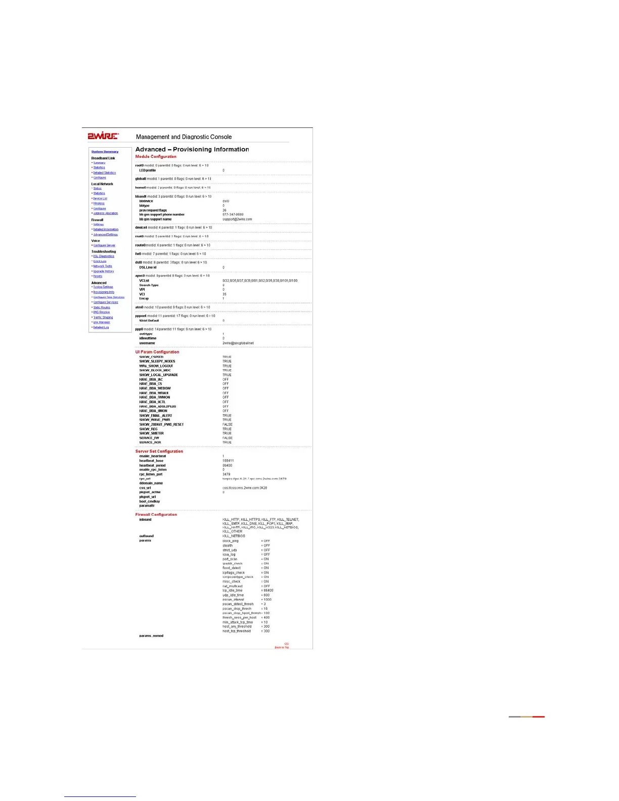 The Advanced – Provisioning Info page displays the parameters with which the 2Wire gateway was