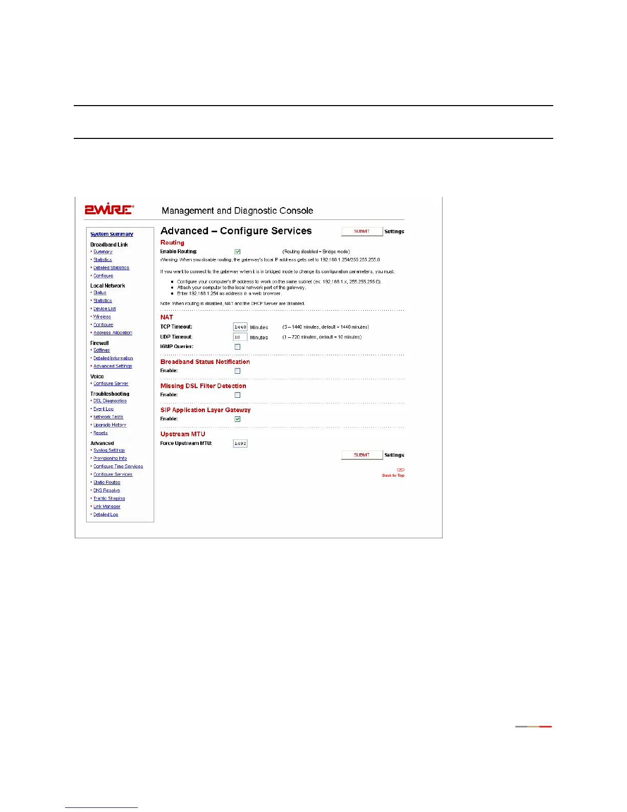 By default, the 2Wire gateway is configured in routed mode. The Advanced – Configure Services page allows