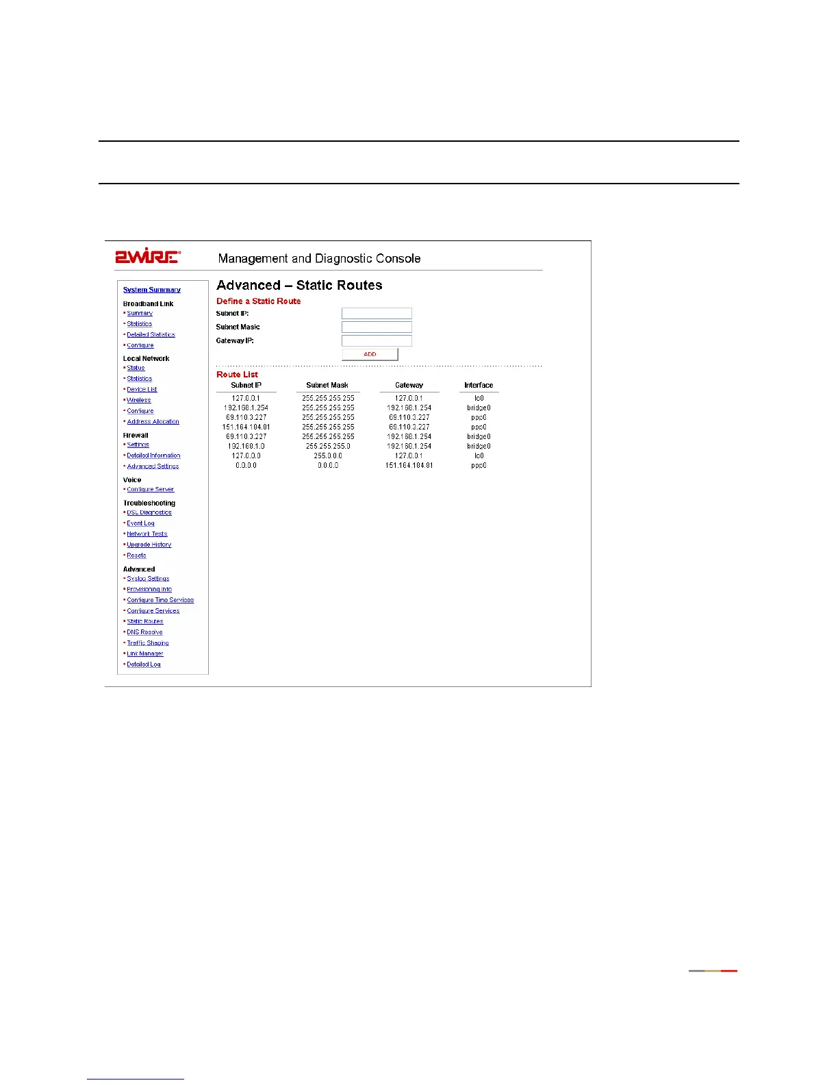 The Advanced - Static Routes page allows you to manually configure static routes that specify the