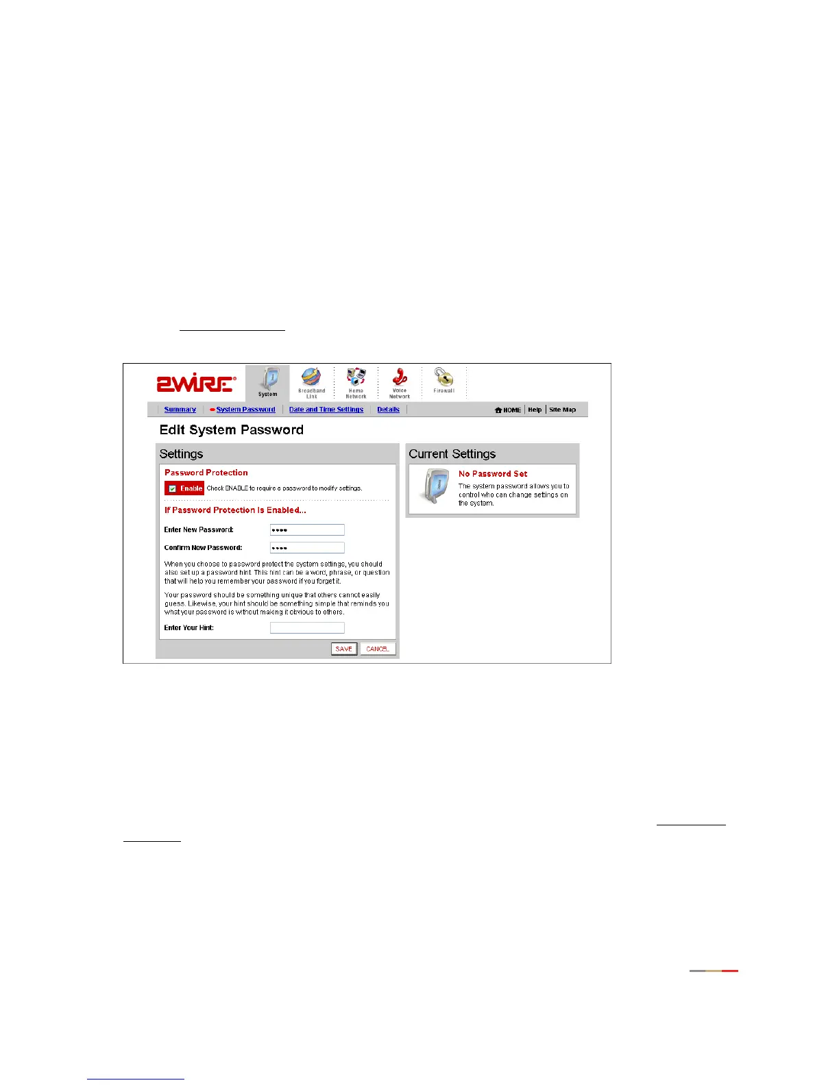 Setting a system password protects your gateway settings from being modified or changed by someone who