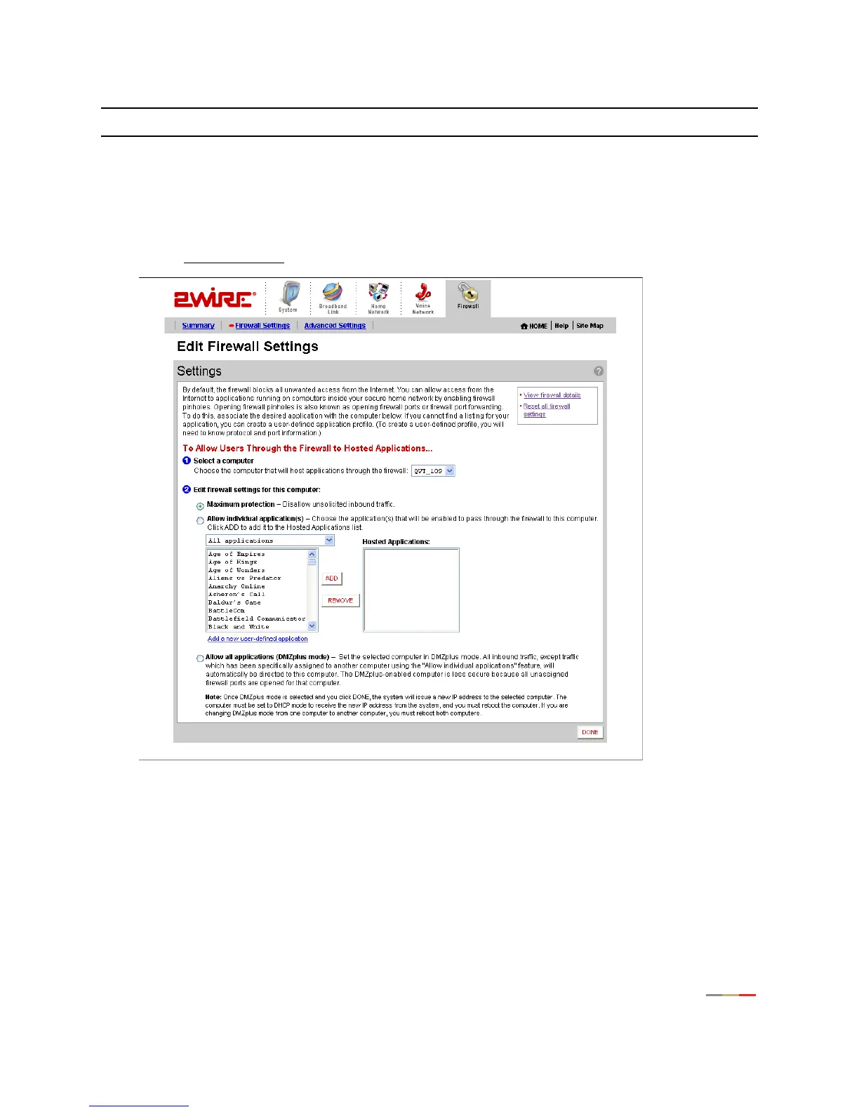Note: DMZplus can only be configured for one computer on your home network at a time.