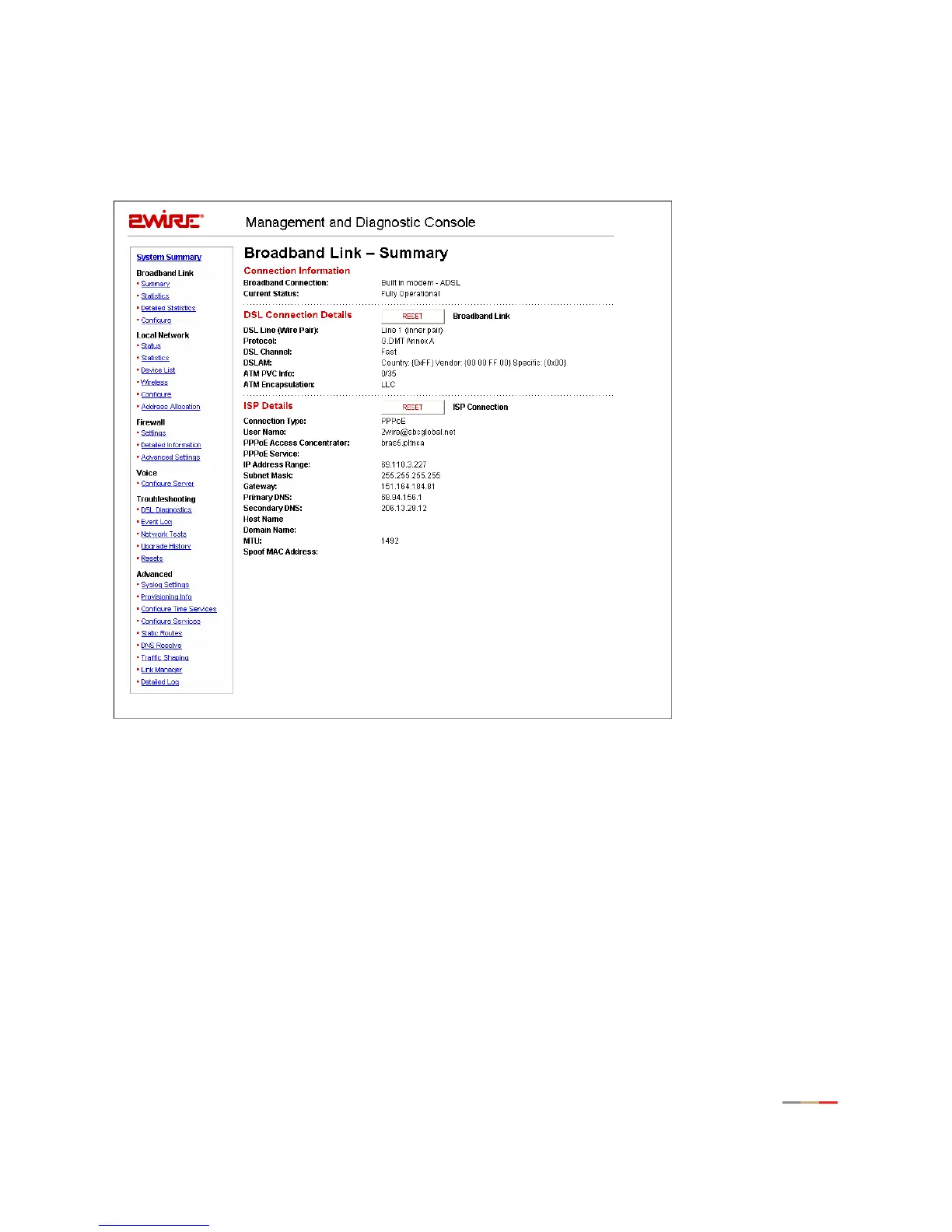 The Broadband Link - Summary page allows you to view 2Wire gateway broadband connectivity-related