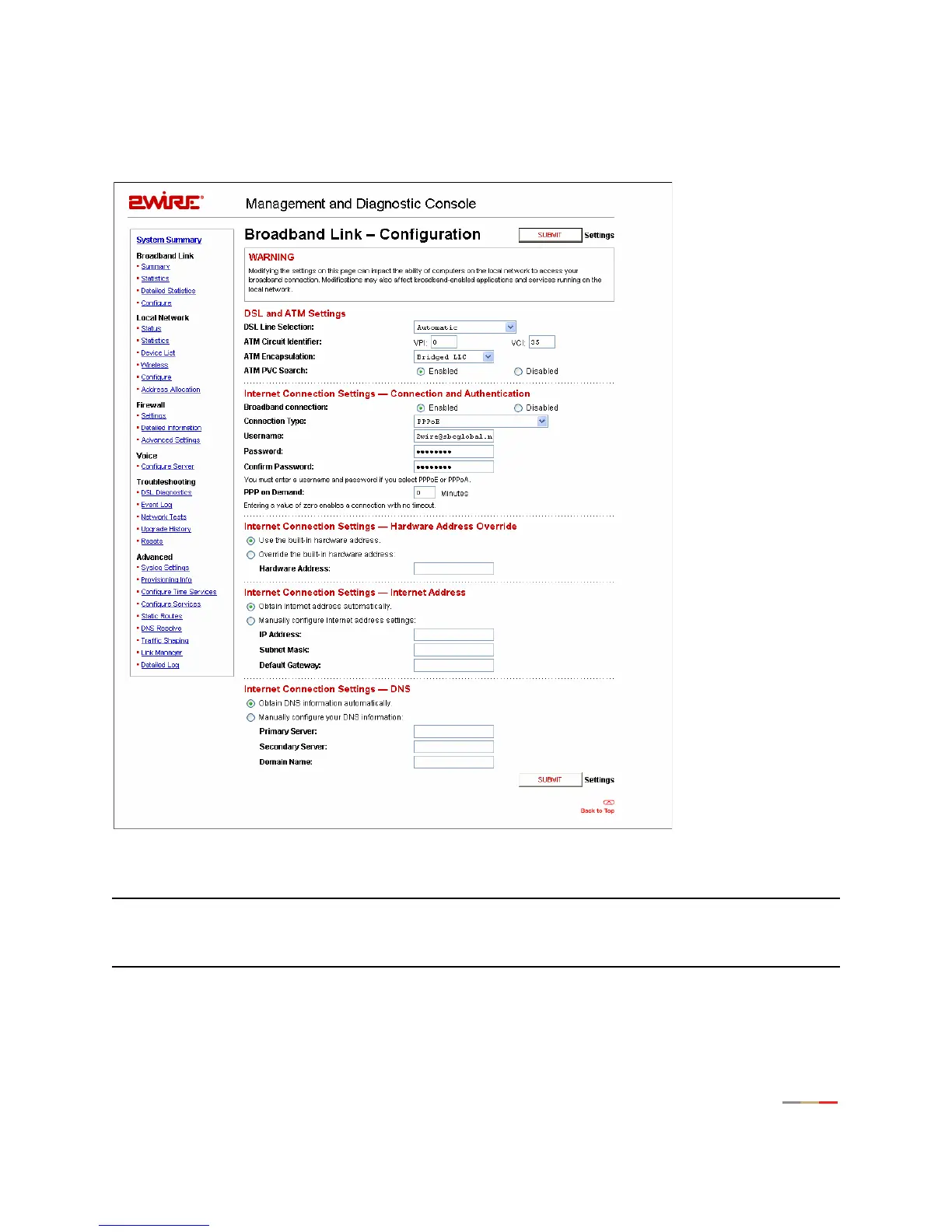 access the broadband connection. You should modify these settings ONLY if you are thoroughly familiar with