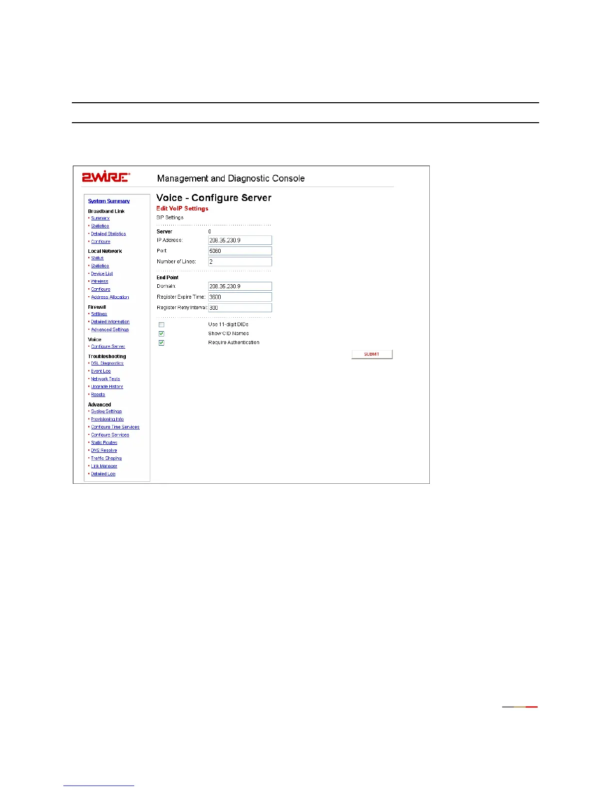 Note: This link is present only if the 2Wire gateway is VoIP-enabled.