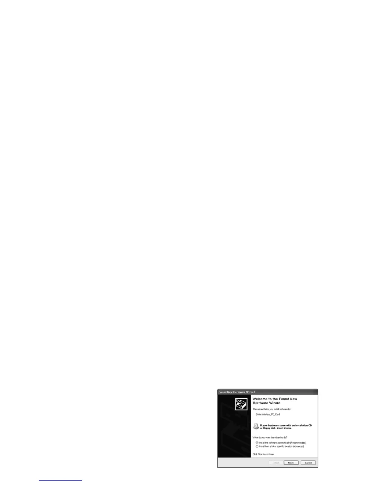 2Wire Wireless PC Card - Installing Drivers for Windows XP; Wizard Initiation and Software Installation
