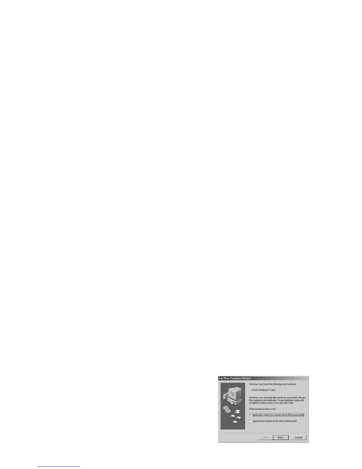 2Wire Wireless PC Card - Installing Drivers for Windows ME; Wizard Initiation and Automatic Search