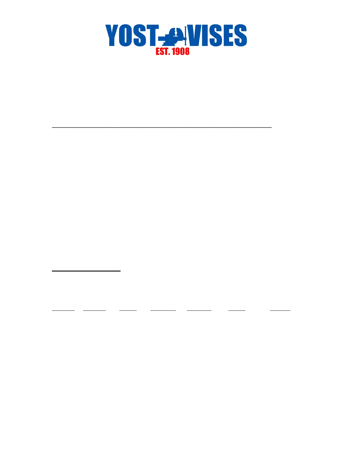 Thank you for choosing a Yost Vise. For future reference please record the following: