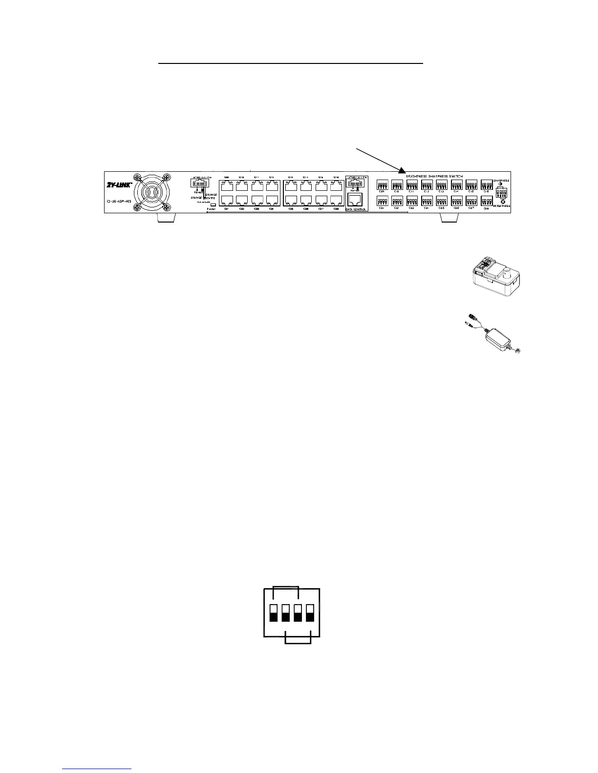 images in terms of Brightness and Sharpness (Colour) with all four Control Switches (Dip