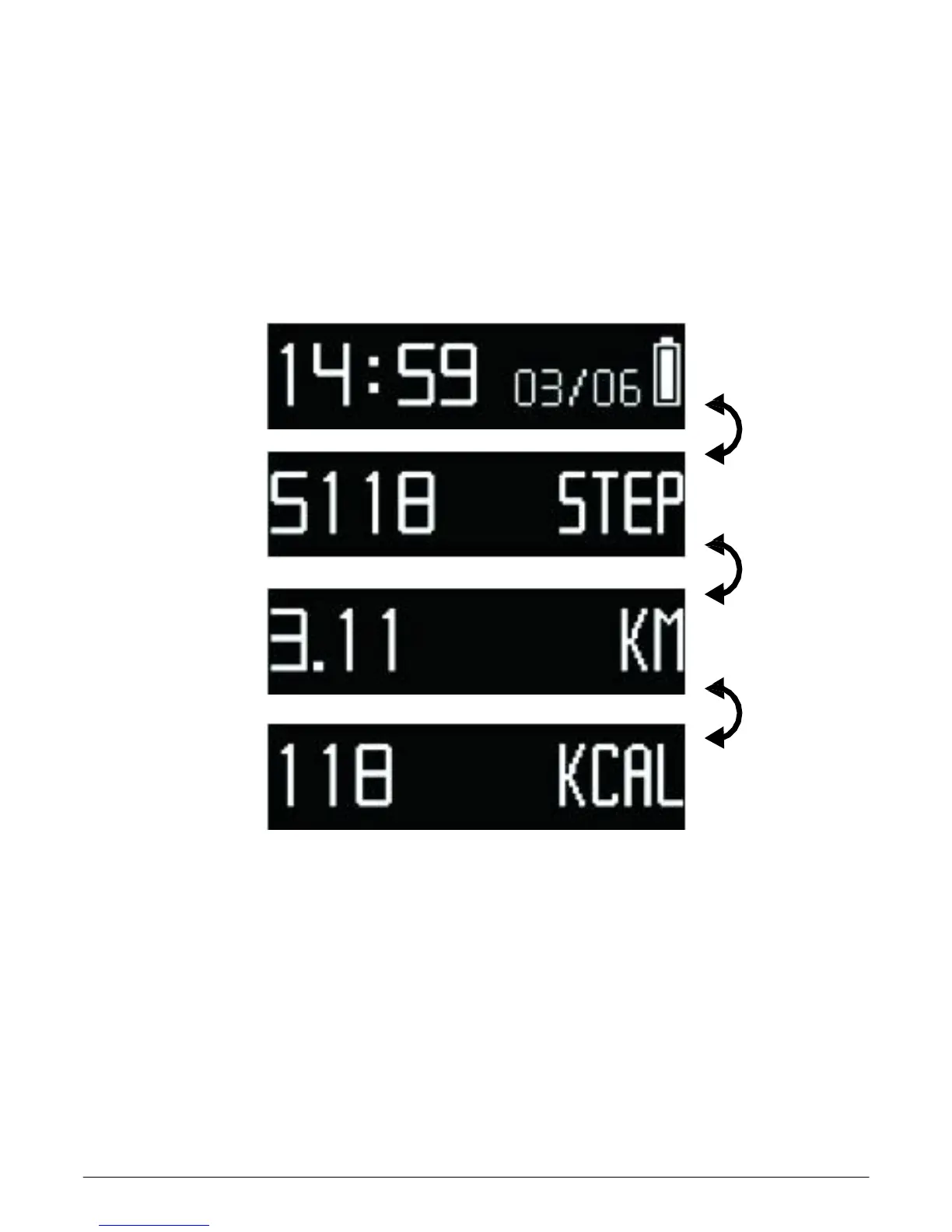 3 PLUS BASIC - Main menu interfaces; Time and date display; Activity metrics display