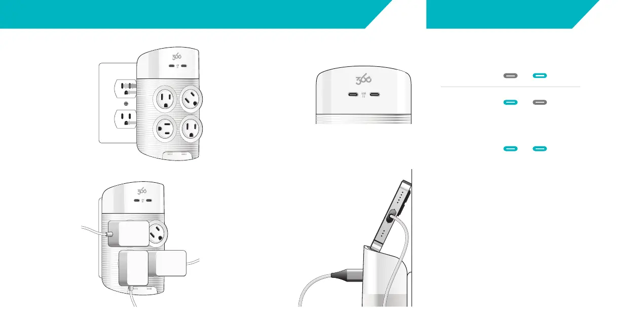 360 electrical Revolve60 - Quick Setup; USB Charging Modes; 1-Port Use Mode; 2-Port Use Mode