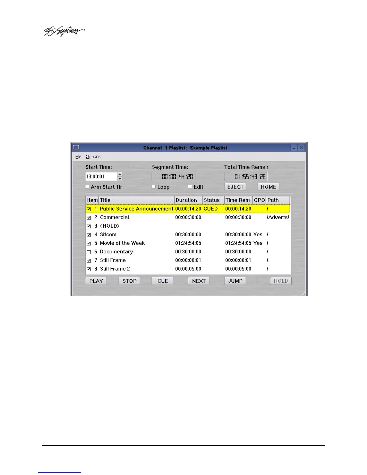files with the extension .lst. Below is an example of a playlist as it appears in the GUI and its