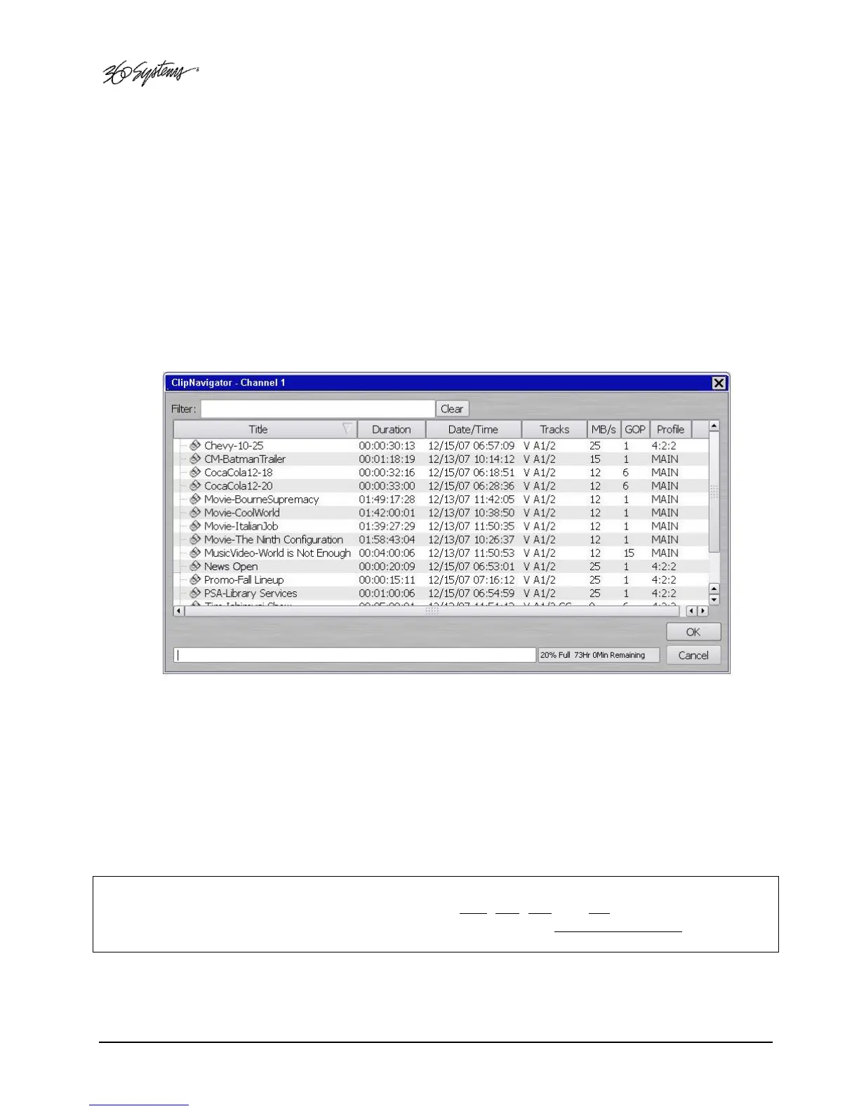 Figure 7 - Channel 1 Clip Navigator "New" mode