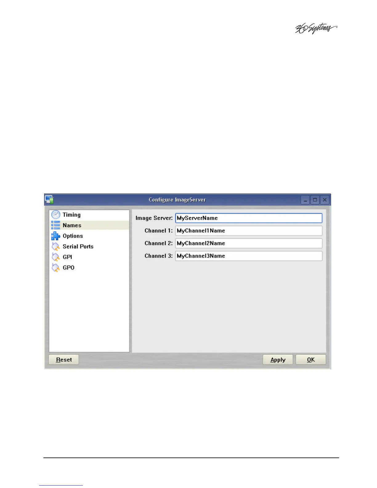 The Image Server can be assigned a name that will be displayed along the top of the Main GUI