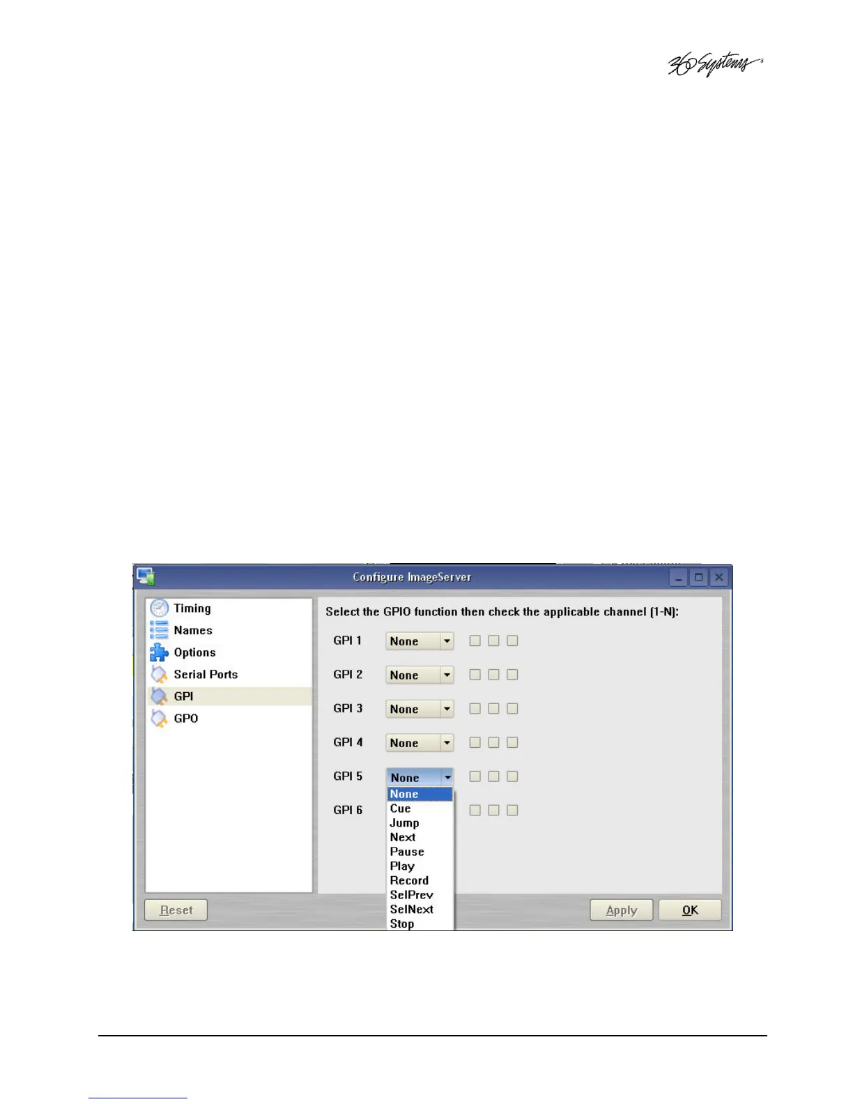 menu and select which event will be triggered when the GPI goes active. Click APPLY to activate.