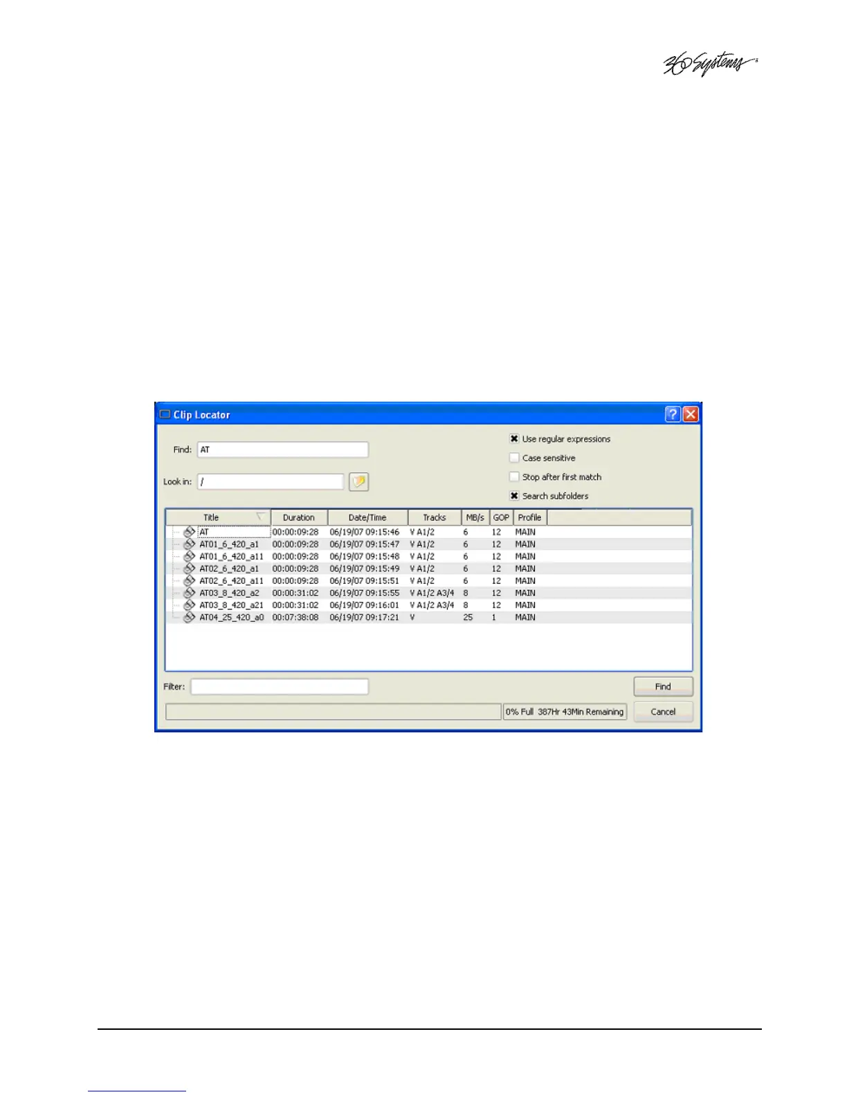 name. With Regular Expressions unchecked, the search will match only clips that BEGIN