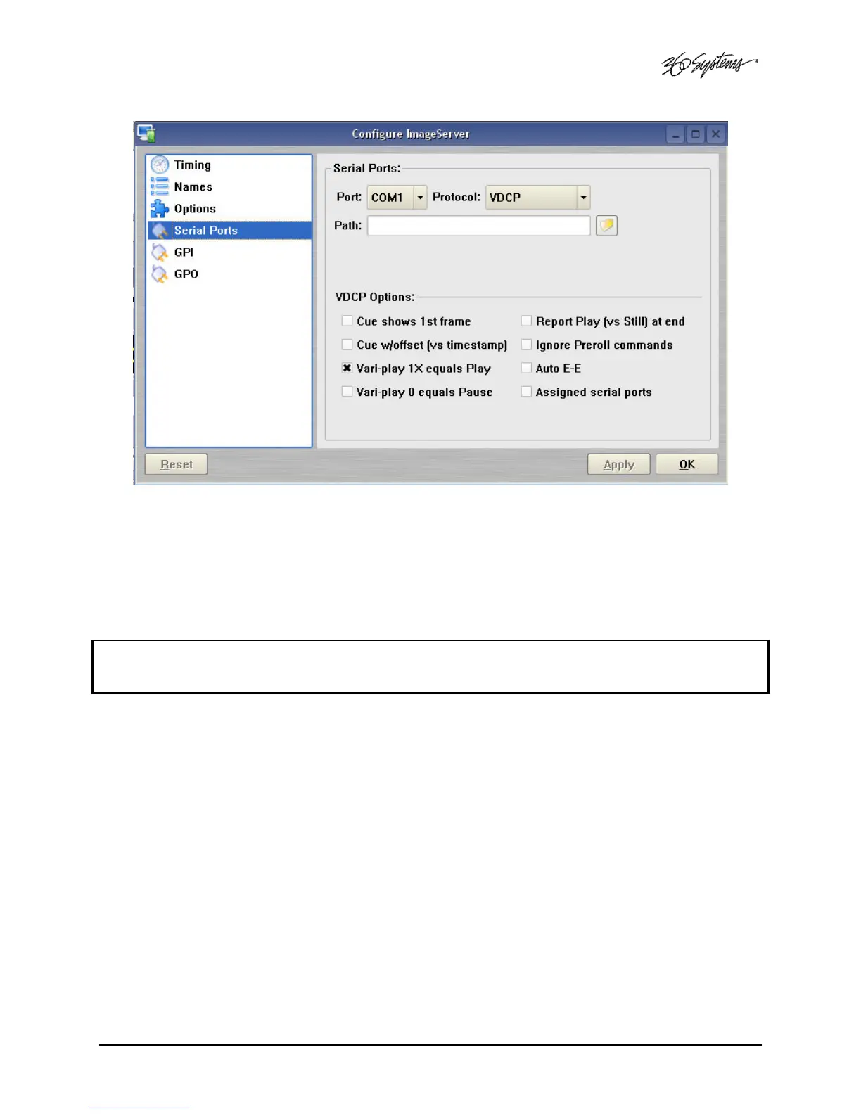 Note that this only affects the operation of the serial port, it does not change the way the Image