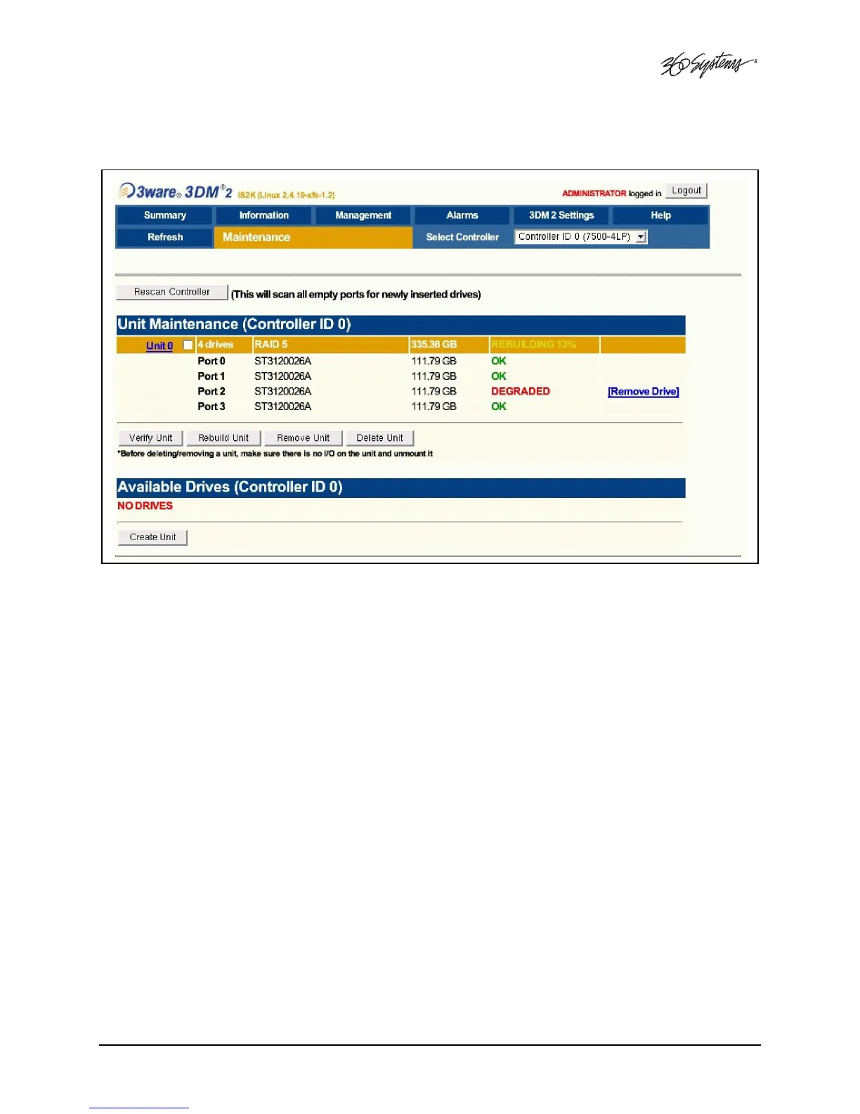 • Remove the degraded drive from the menu by clicking Remove Drive.