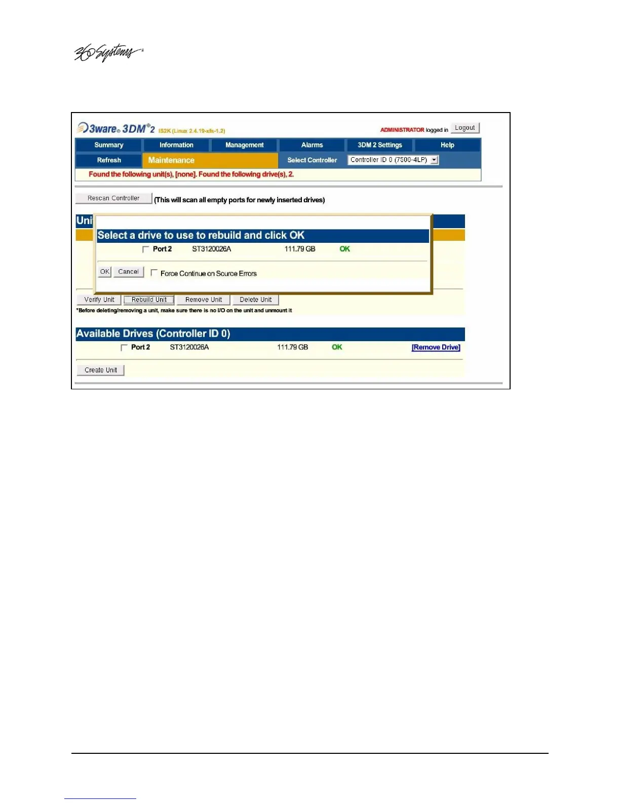 Figure 27: Selecting a Drive to Use in Rebuilding the Array