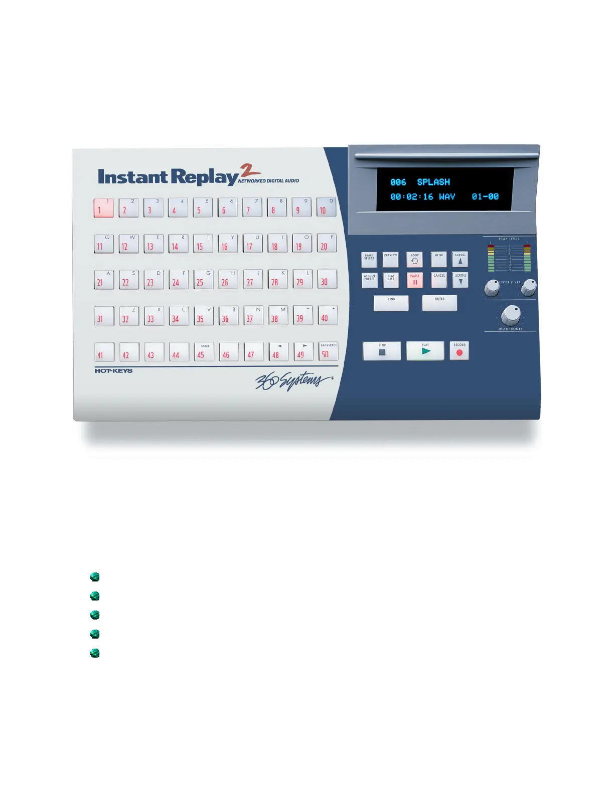 Instant Replay's front panel controls are shown in Figure 1. Most of the buttons include an indicator