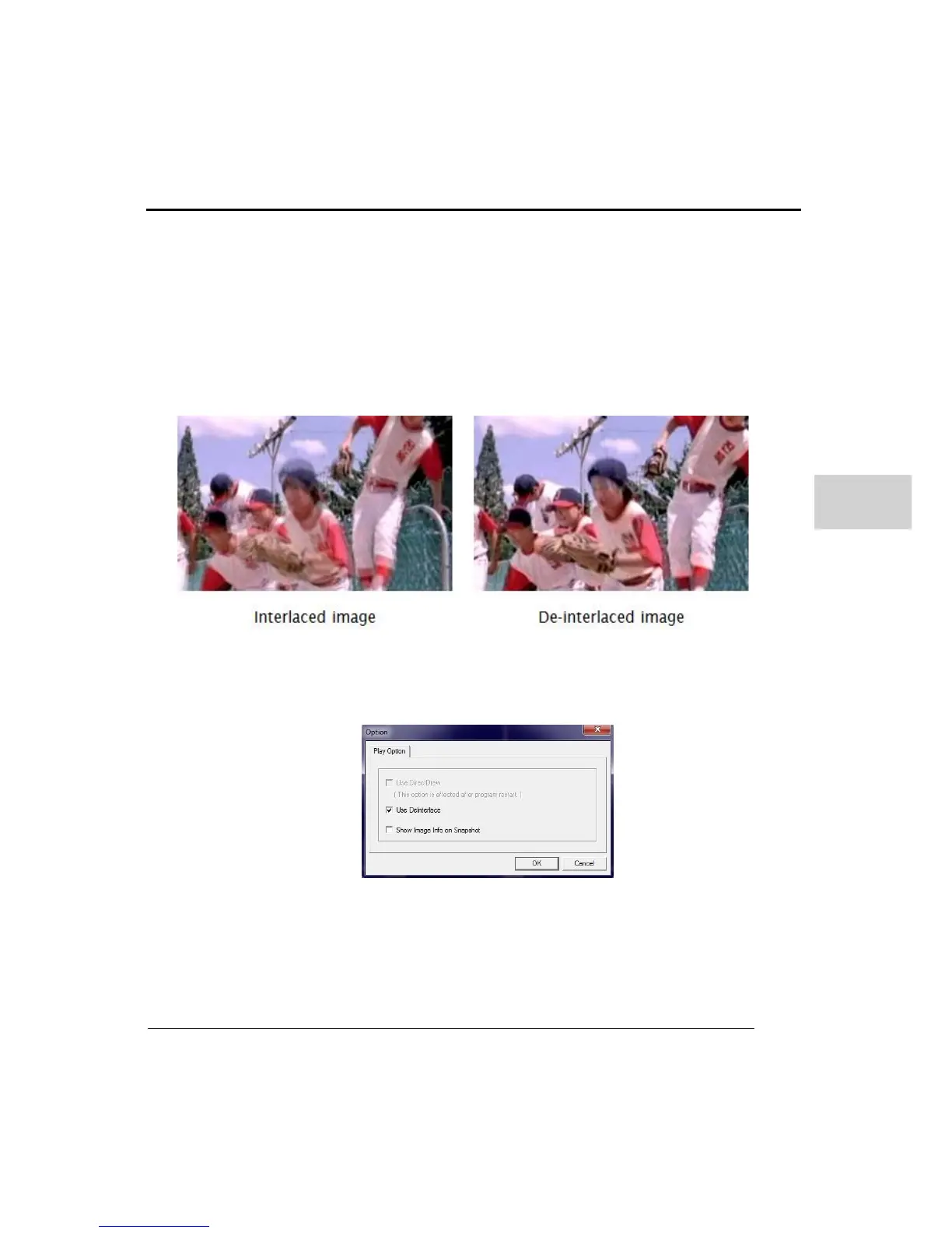 shows the difference between interlaced and de-interlaced images.