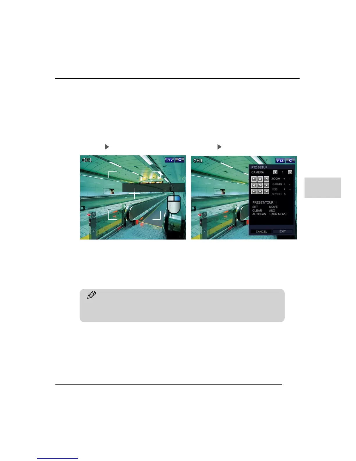below picture. The PTZ setup menu will then be displayed with all the controls for the