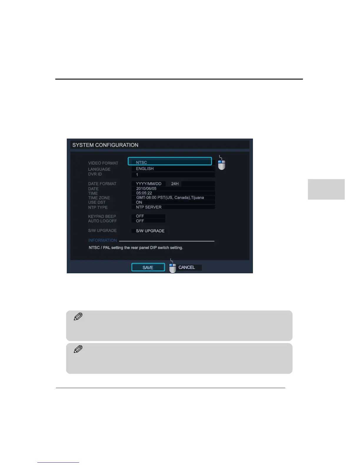 configurations on the system. To convert between NTSC/PAL, use the switch on rear side