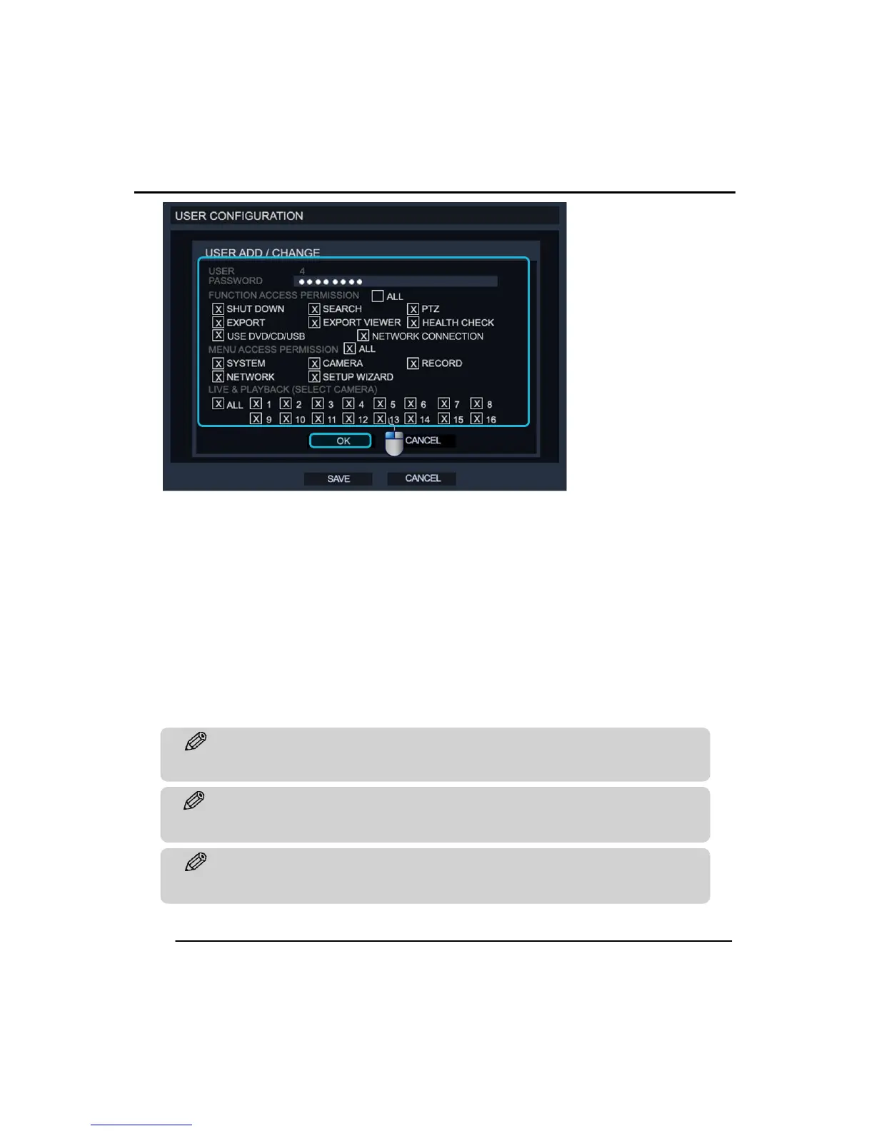 3. Then the ‘USER ADD/CHANGE’ menu will be displayed as above.